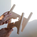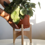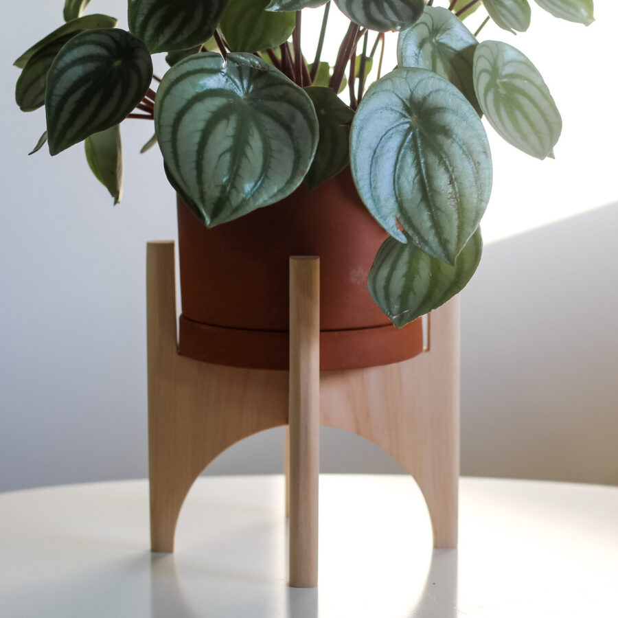 Drveni stalak, pogodan za saksije precnika 15 cm. Sastoji se iz dva odvojena dela koja se sklapaju i tako formiraju postolje.